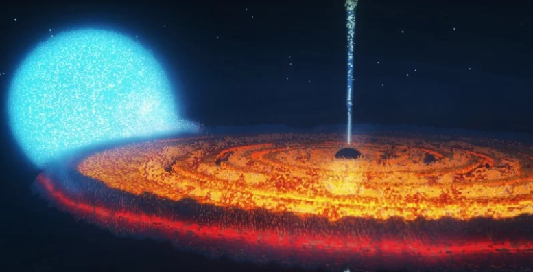 Powstaje ono w dysku, składającym się z gazów i pyłów, wokół czarnej dziury