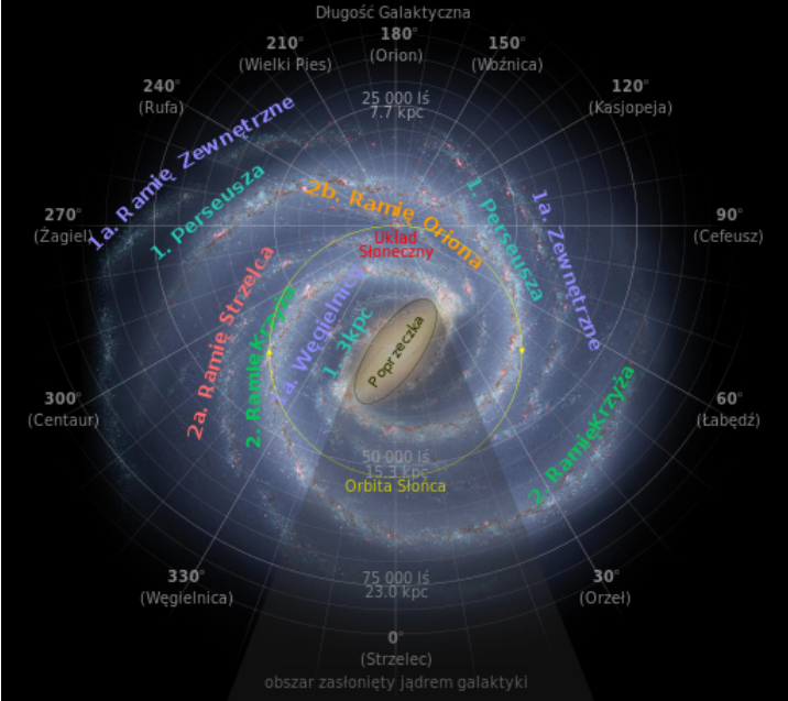 Słońce znajduje się w ramieniu Oriona. Jedno pełne okrążenie naszej gwiazdy