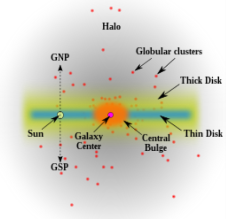 - galaktycznego halo (obszaru otaczającego dysk, w którym