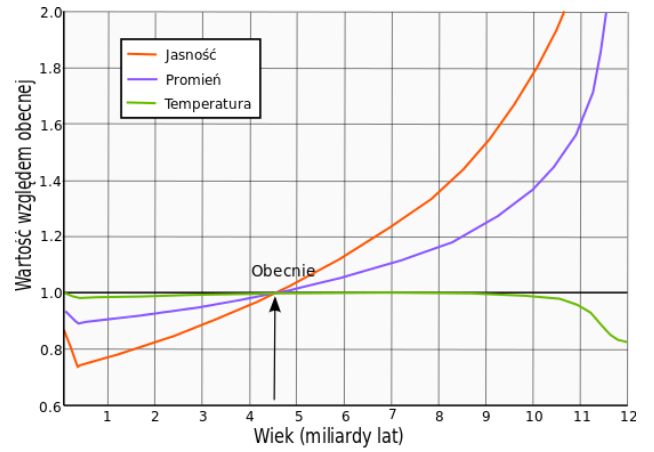 Słoneczny. Centralna część Słońca z czasem rozgrzewała się, a jej gęstość